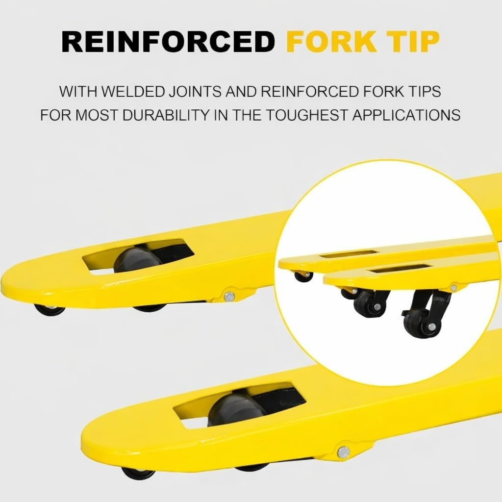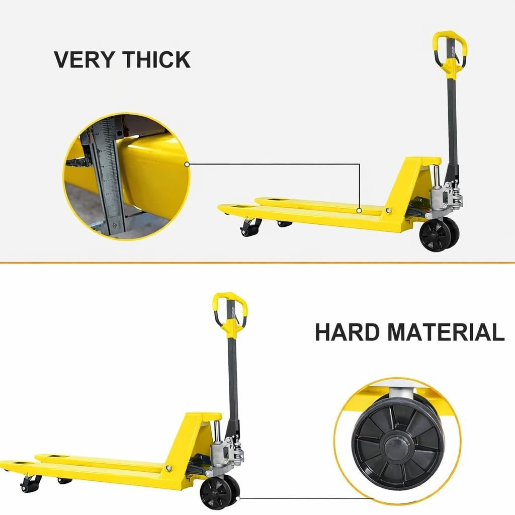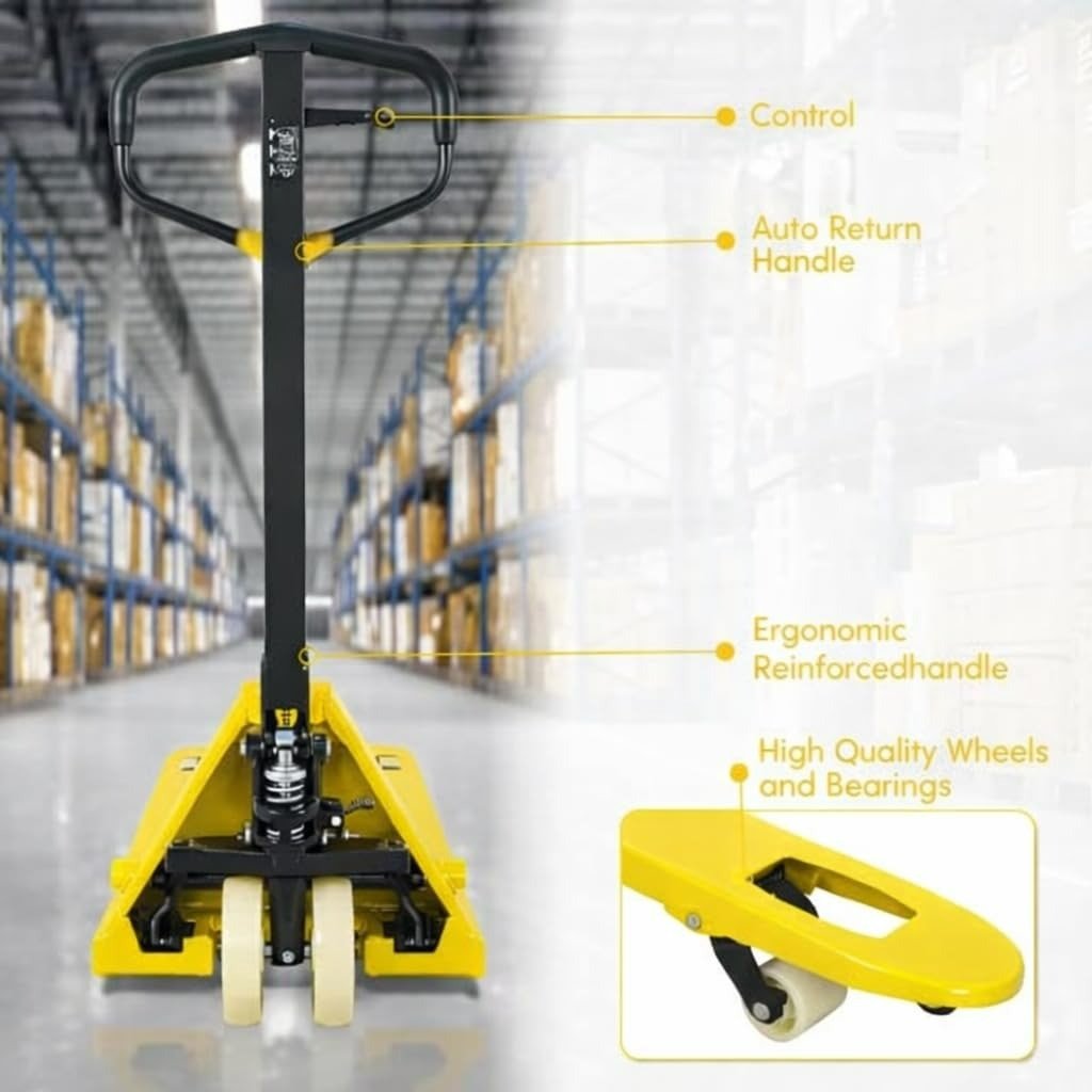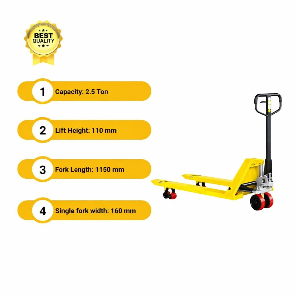 Toolskart hydraulic pallet truck – Hydraulic 2.5 Ton Hand Pallet Truck is a heavy duty material handling solution designed for lifting and moving pallets in warehouses, factories, airports, stores and logistics centers. Features 1150×550 mm wide forks for standard pallets, smooth hydraulic lifting system and durable nylon wheels for easy movement. With 2500 kg load capacity, it is ideal for loading, unloading, inventory movement and daily industrial operations.